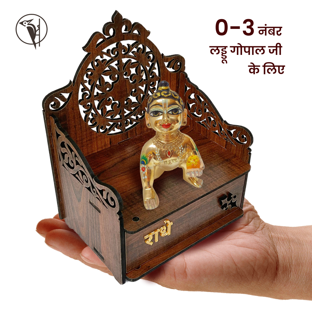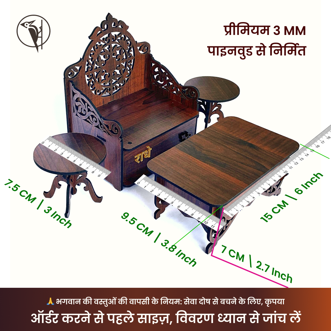 Laddu Gopal Ji singhasan, with a table and two stool (Dark)